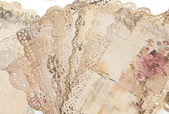 The above Lacey Aged Paper comes with 80 pieces that you can add to your kit with confidence.